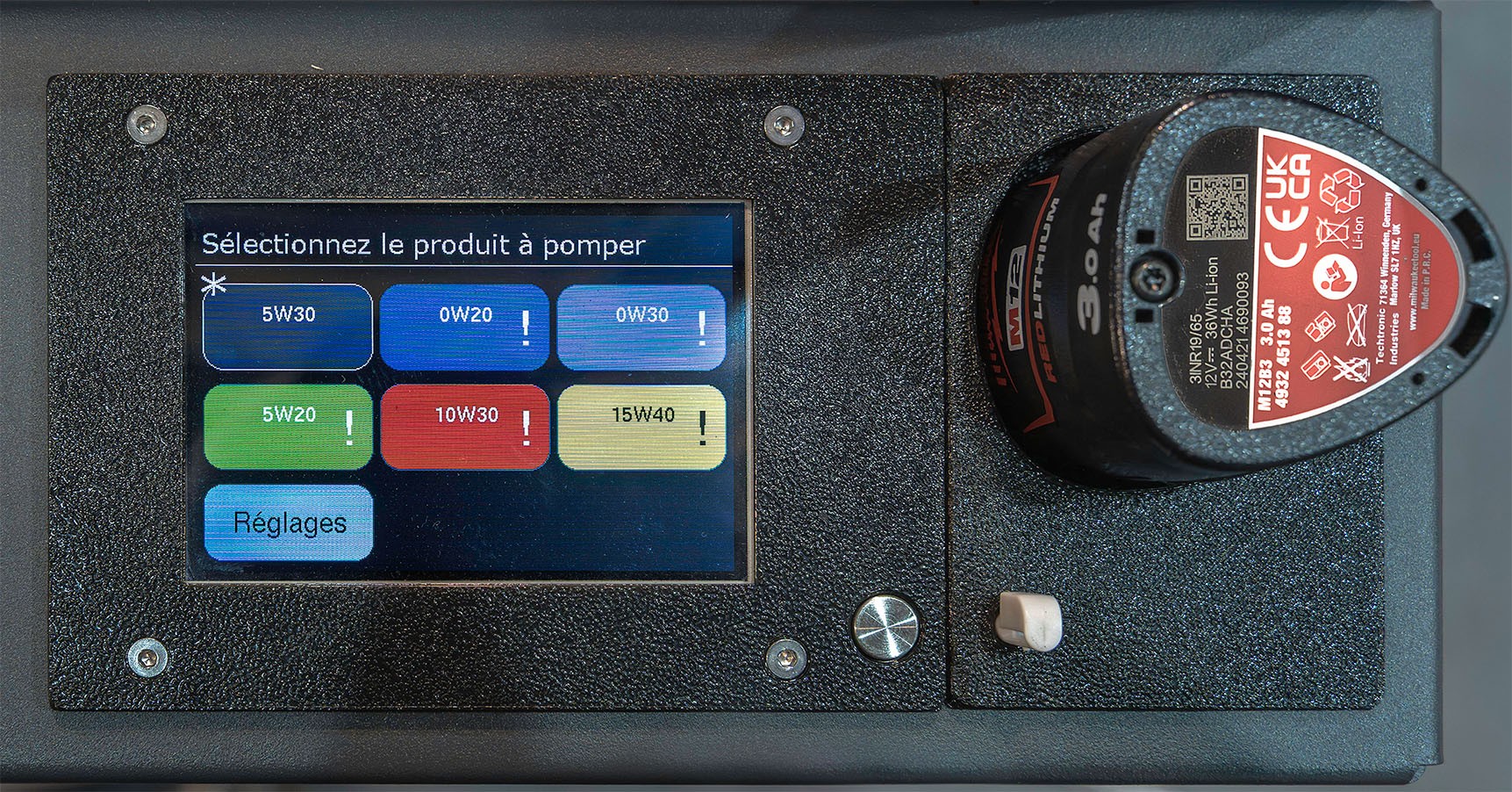 - Funciona con batería recargable de 12V (tipo Milwaukee)